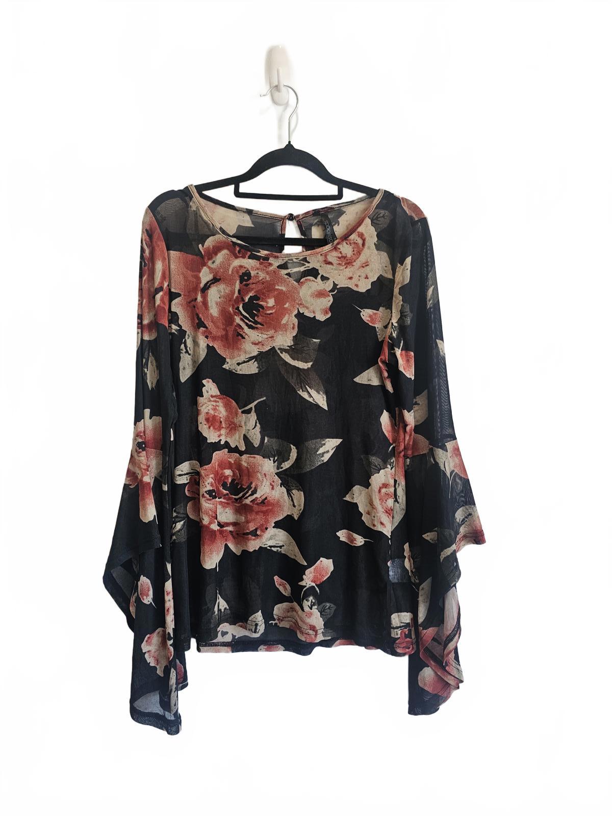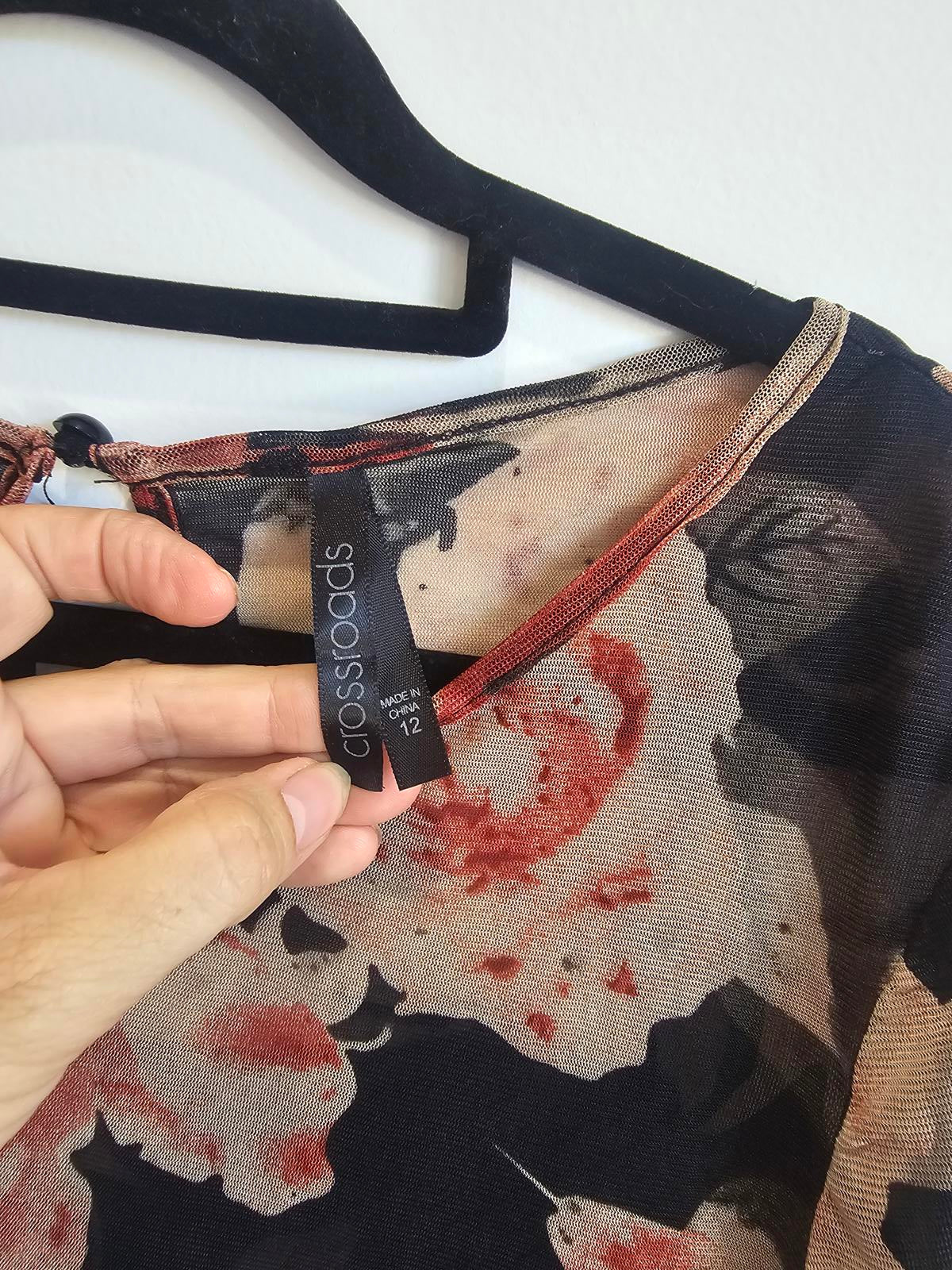 Black floral bell sleeve crossroads sheer size 12